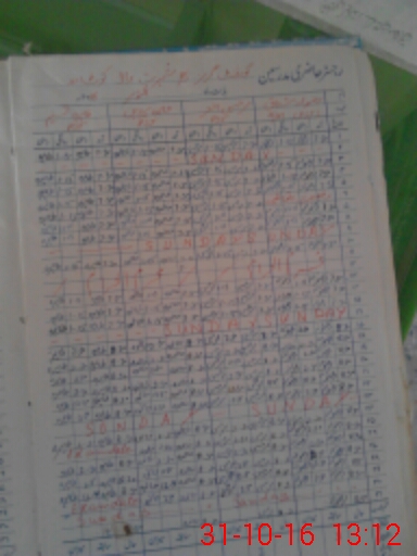 | CNIC | Full Name | Designation | R/C | Absence During Last Calender Month |