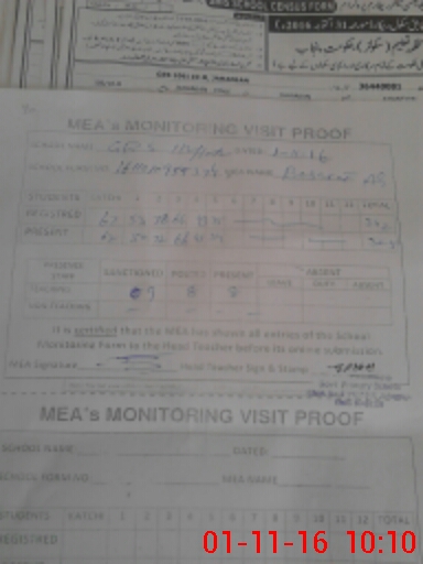 | Monitoring Date: 01-11-2016 | Start Time: 01-11-2016 09:55 AM | End Time: 01-11-2016 10:12 AM | Name of MEA: Z.**** Ba**** Al**** | |