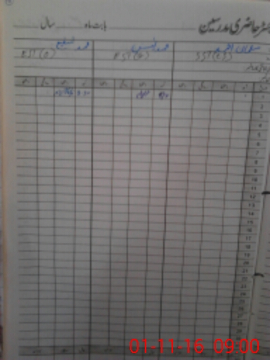 | CNIC | Full Name | Designation | R/C | Absence During Last Calender Month |