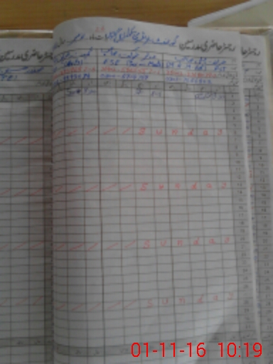 | CNIC | Full Name | Designation | R/C | Absence During Last Calender Month |