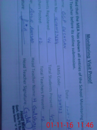| EMIS Code: 31310923 | Name of School: GGPS DESHTIAN | |||