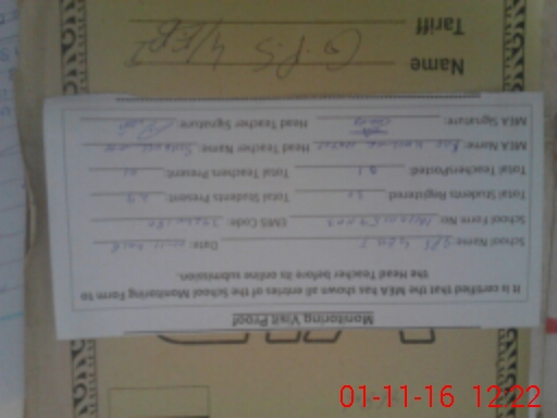 | Name: SA**** UL**** Designation: (School Headmaster's/Headmistress's) PST Phone/Cell Number: 03**** |