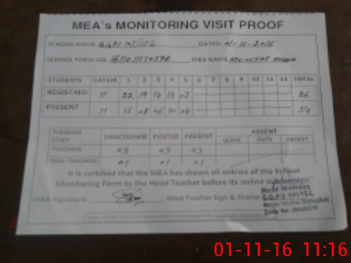 | Attendance Register | Head Teacher | MEA with School | Visit Proof |