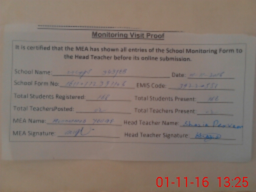 | Certified that this School was Inspected by the Undersigned MEA/DMO Today and the Information Stated Above is as Per Record. | |||||