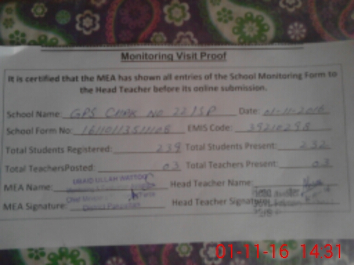 | EMIS Code: 39210298 | Name of School: GPS 22 SP | |||