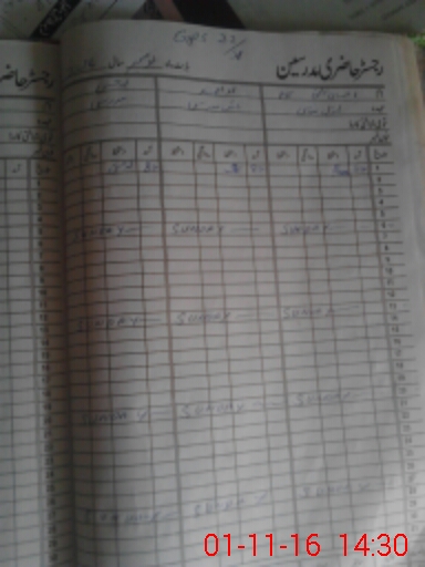 | CNIC | Full Name | Designation | R/C | Absence During Last Calender Month |