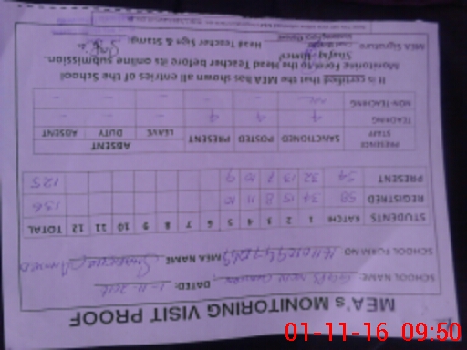 | Attendance Register | Head Teacher | MEA with School | Visit Proof |