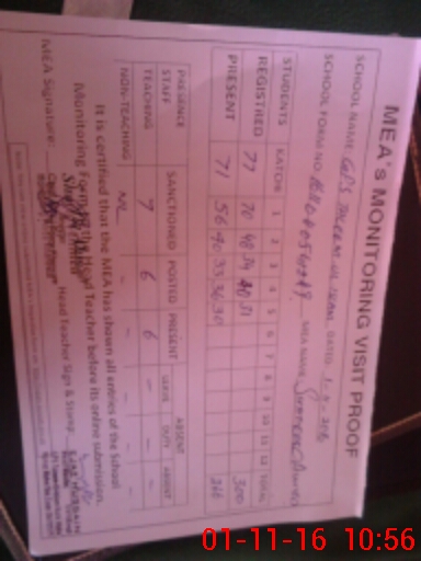 | Attendance Register | Head Teacher | MEA with School | Visit Proof |
