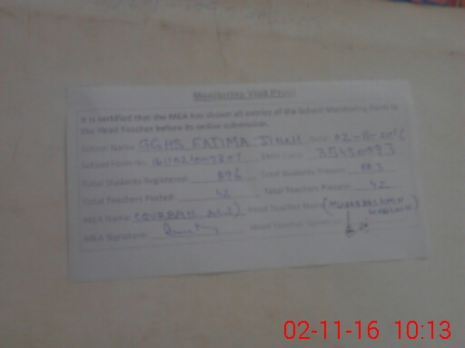 | EMIS Code: 35430093 | Name of School: GGHS FATIMA JINNAH SHEIKHUPURA | |||