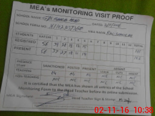 | Attendance Register | Head Teacher | MEA with School | Visit Proof |