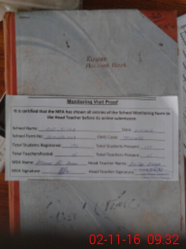 | Attendance Register | Head Teacher | MEA with School | Visit Proof |