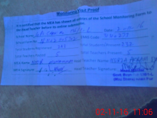 | Certified that this School was Inspected by the Undersigned MEA/DMO Today and the Information Stated Above is as Per Record. | |||||