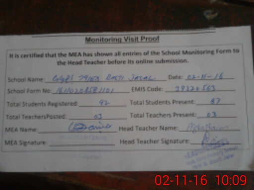 | EMIS Code: 39220563 | Name of School: GGPS 79/EB III basti jalal | |||