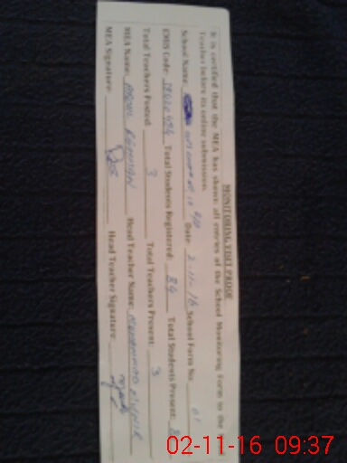 | Attendance Register | Head Teacher | MEA with School | Visit Proof |