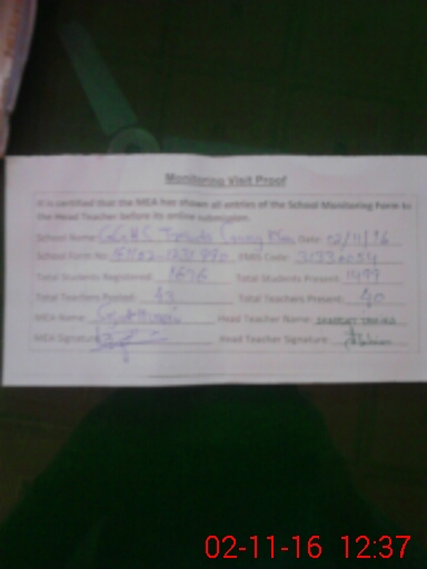 | Certified that this School was Inspected by the Undersigned MEA/DMO Today and the Information Stated Above is as Per Record. | |||||