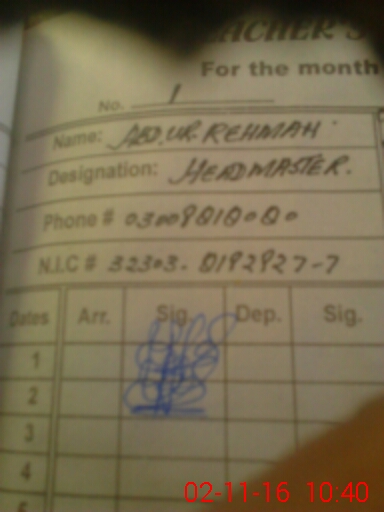 | Name: Ab**** Re**** Designation: (School Headmaster's/Headmistress's) Head Master Phone/Cell Number: 03**** |