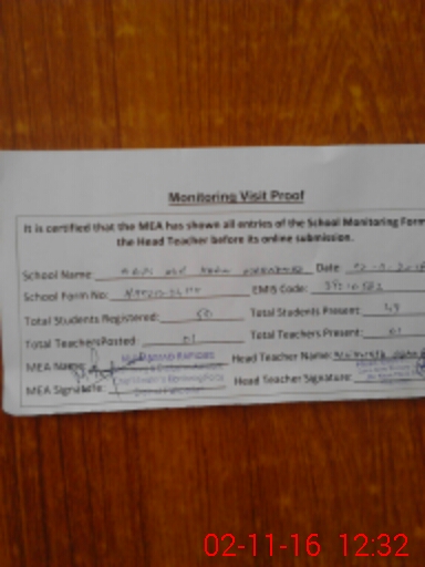 | Certified that this School was Inspected by the Undersigned MEA/DMO Today and the Information Stated Above is as Per Record. | |||||