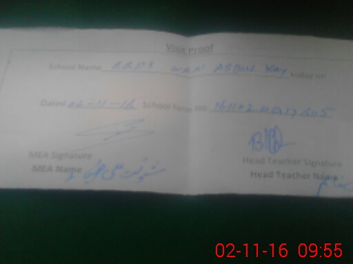 | Attendance Register | Head Teacher | MEA with School | Visit Proof |