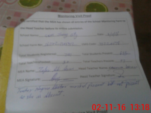 | Attendance Register | Head Teacher | MEA with School | Visit Proof |