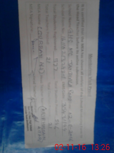 | Certified that this School was Inspected by the Undersigned MEA/DMO Today and the Information Stated Above is as Per Record. | |||||