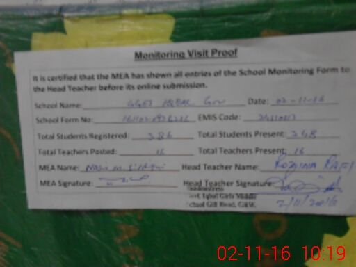 | Attendance Register | Head Teacher | MEA with School | Visit Proof |