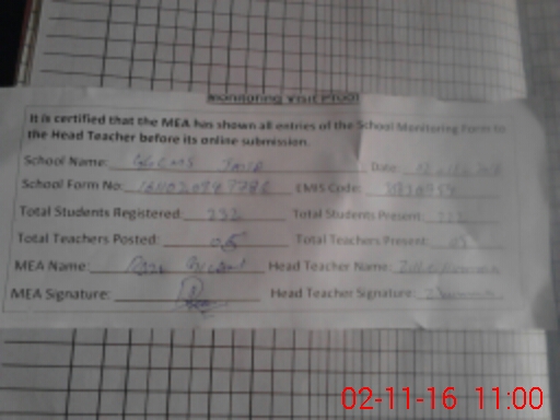 | Certified that this School was Inspected by the Undersigned MEA/DMO Today and the Information Stated Above is as Per Record. | |||||
