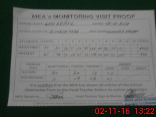 | Certified that this School was Inspected by the Undersigned MEA/DMO Today and the Information Stated Above is as Per Record. | |||||