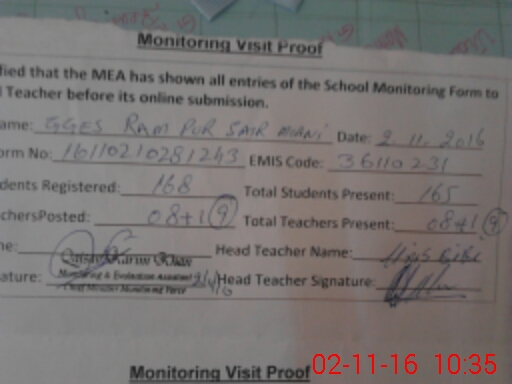 | EMIS Code: 36110231 | Name of School: GGES RAM PUR SAIR MIANI MULTAN | |||