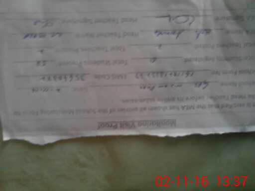 | Name: Mu**** Id**** Designation: (School Headmaster's/Headmistress's) Pst Phone/Cell Number: 03**** |