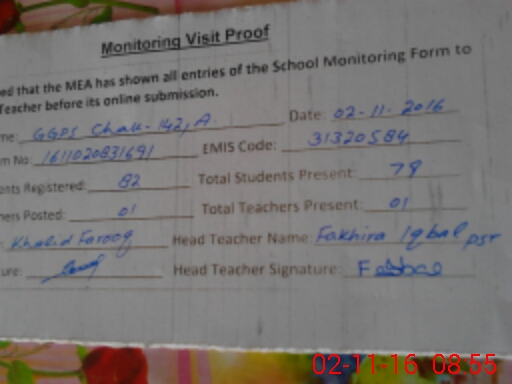 | EMIS Code: 31320584 | Name of School: GGPS CHAK NO 142 /A | |||