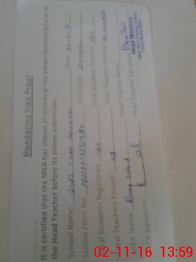 | Certified that this School was Inspected by the Undersigned MEA/DMO Today and the Information Stated Above is as Per Record. | |||||