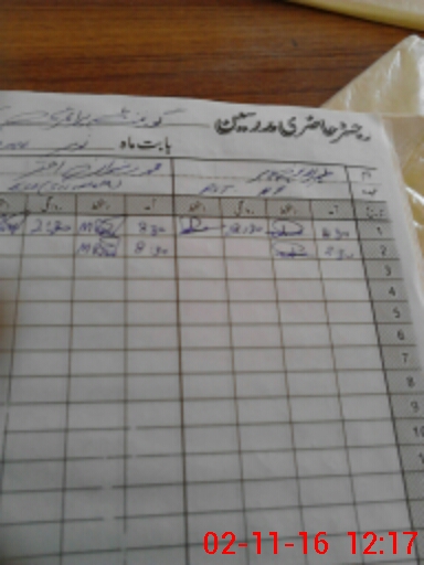 | CNIC | Full Name | Designation | R/C | Absence During Last Calender Month |