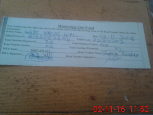 | EMIS Code: 32310202 | Name of School: GGPS KACHI WALI | |||