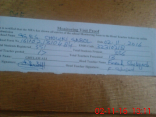 | EMIS Code: 32310218 | Name of School: GGES CHOWKI GABOOL | |||