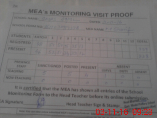 | Certified that this School was Inspected by the Undersigned MEA/DMO Today and the Information Stated Above is as Per Record. | |||||