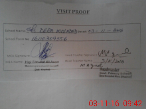 | EMIS Code: 38210270 | Name of School: GPS DERA MOLADAD | |||