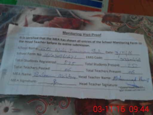 | Attendance Register | Head Teacher | MEA with School | Visit Proof |