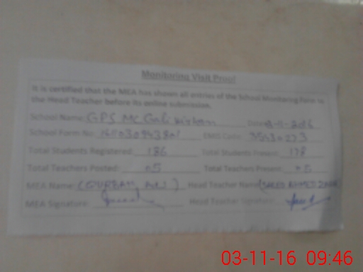 | Certified that this School was Inspected by the Undersigned MEA/DMO Today and the Information Stated Above is as Per Record. | |||||