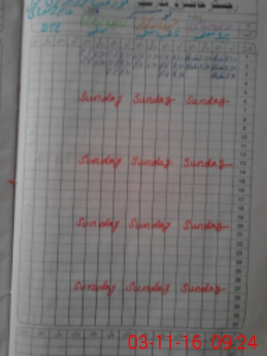 | CNIC | Full Name | Designation | R/C | Absence During Last Calender Month |