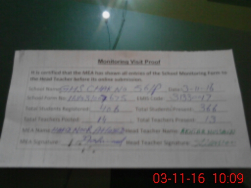 | EMIS Code: 31330017 | Name of School: GHS CHAK NO. 56/P | |||