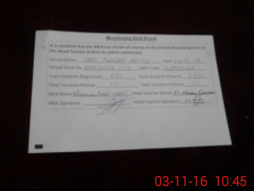 | Certified that this School was Inspected by the Undersigned MEA/DMO Today and the Information Stated Above is as Per Record. | |||||