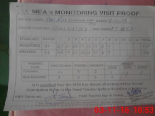 | Attendance Register | Head Teacher | MEA with School | Visit Proof |