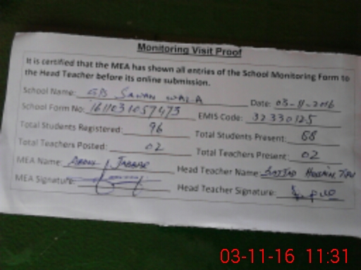 | EMIS Code: 32330125 | Name of School: GPS SAWAN WALA | |||