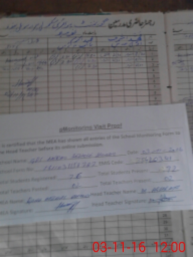 | Attendance Register | Head Teacher | MEA with School | Visit Proof |