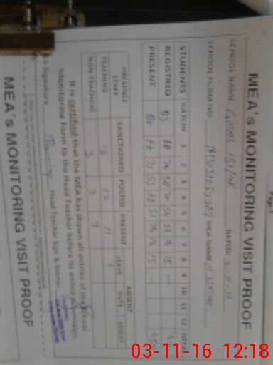 | Monitoring Date: 03-11-2016 | Start Time: 03-11-2016 10:56 AM | End Time: 03-11-2016 12:19 PM | Name of MEA: M.Is**** (S**** 03**** | |