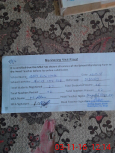 | Certified that this School was Inspected by the Undersigned MEA/DMO Today and the Information Stated Above is as Per Record. | |||||