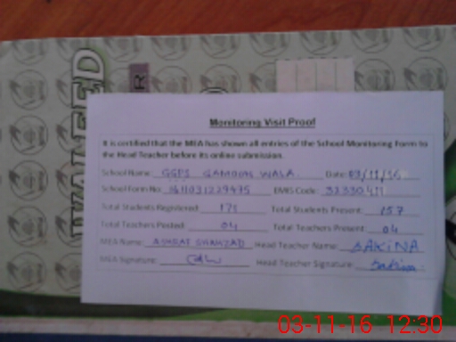 | EMIS Code: 32330411 | Name of School: GGPS GAMOON WALA | |||