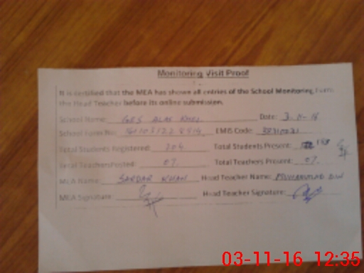 | Certified that this School was Inspected by the Undersigned MEA/DMO Today and the Information Stated Above is as Per Record. | |||||