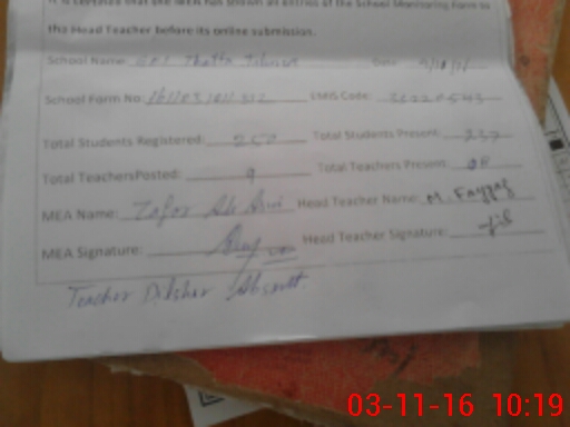 | Attendance Register | Head Teacher | MEA with School | Visit Proof |