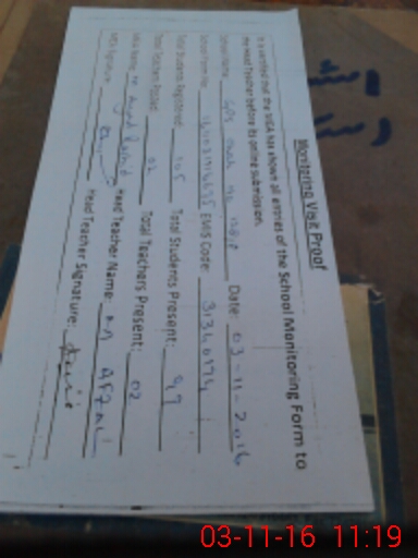 | Attendance Register | Head Teacher | MEA with School | Visit Proof |